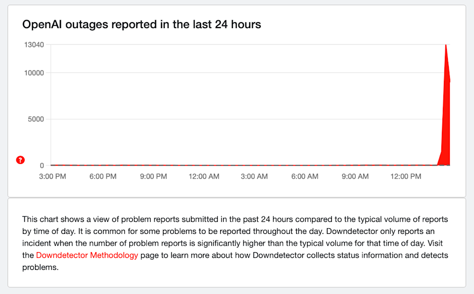 If you’ve had trouble using ChatGPT today, you aren’t alone. The AI chatbot is experiencing a partial outage for many users this afternoon. Down Detector reports of issues with the service leapt from almost nothing to more than 12,000 around 3PM ET.